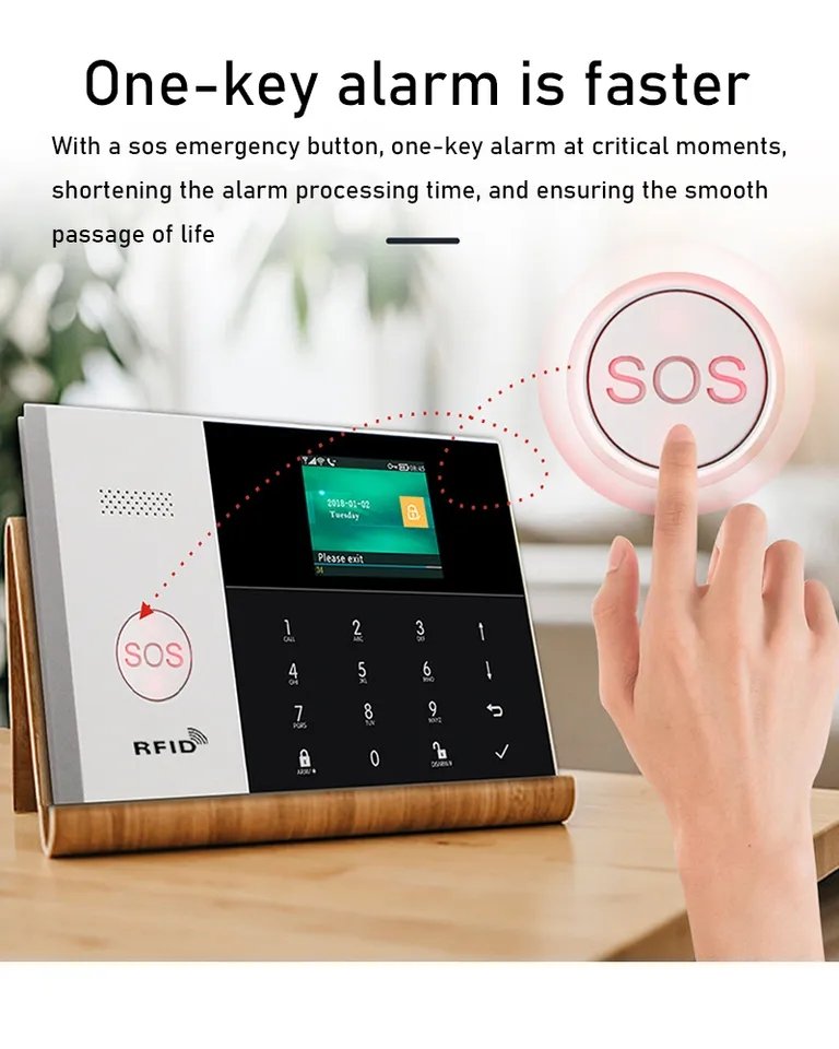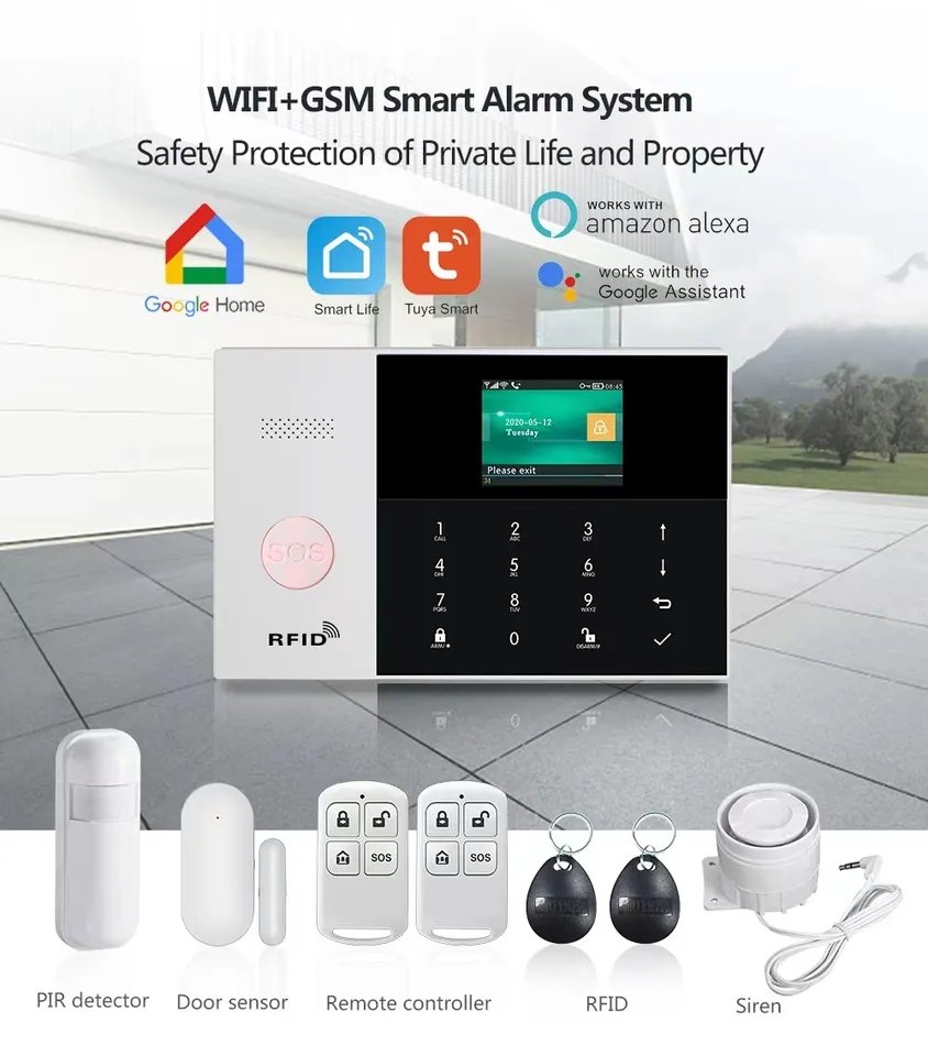 2.4 Inch Tuya WiFi GSM Alarm System With Motion Detector Door Sensor RFID Wired Siren Remote Security Outdoor Alarm System