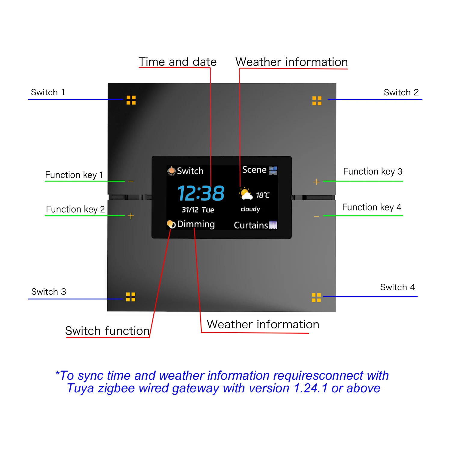 Smart Home Switch 1.9 Inch Screen, Tuya Remote Control Switch, ZigBee Wall Switch, Home Auto Wireless Lighting Control System