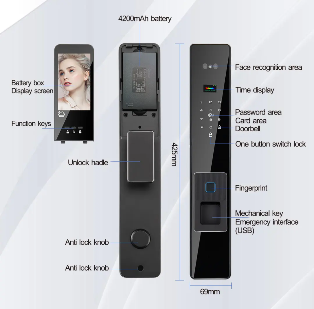 - New Face Recognition Function: Don’t need your hand, when you go back, just face to the lock, it will automatic recognition and unlock.