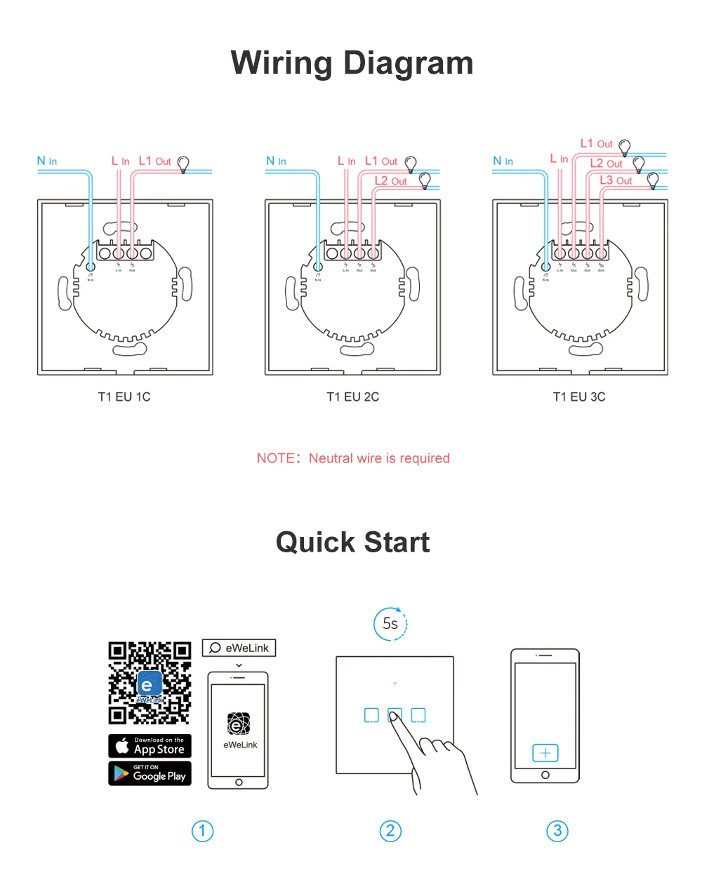 Product: SONOFF T0 EU 3C Touch Wall Switch